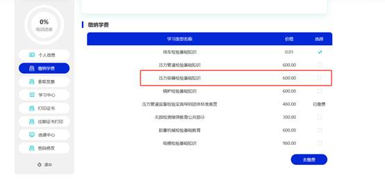 【缴纳学费】入口进行课程缴费开通