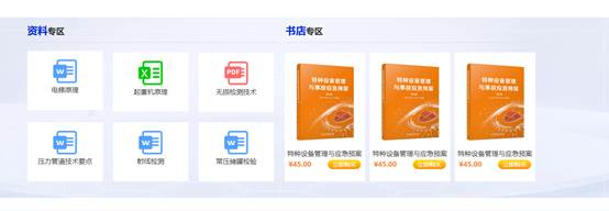 【资料专区】中可进行相关行业文件资讯、法规标准等文件下载使用。【书店专区(待开放)】可进行协会推荐教材或刊物购买。