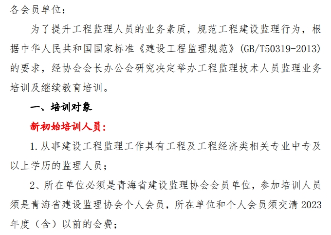关于举办建设工程监理技术人员监理业务培训及继续教育培训的通知